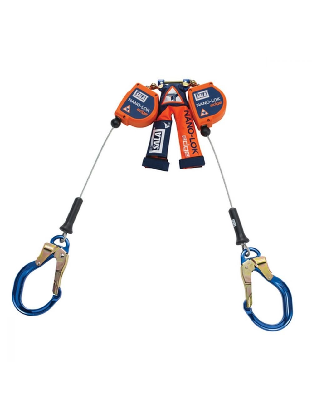 8 ft. (2.4m) twin-leg lifelines with 3/16″ (5mm) galvanized steel wire rope and aluminum rebar locking hooks, quick connector for harness mounting.