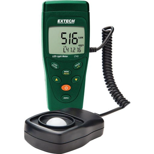 The LT45 LED light meter is useful for measuring and optimizing environmental light levels in a wide range of environments, including office buildings, manufacturing plants and warehouses, university campuses, schools, hospitals, and many other locations. OSHA regulates workplace lighting because illumination must be adequate for assigned tasks, and light meters are used to verify regulatory compliance, as well as state and local public safety codes and ordinances. Use of LED lighting is on the rise because it is more efficient to operate, it emits stable, high quality illumination, and the technology is dropping in price. The LT45 comes with a 9-volt battery, protective sensor cover, hard case, and user manual.