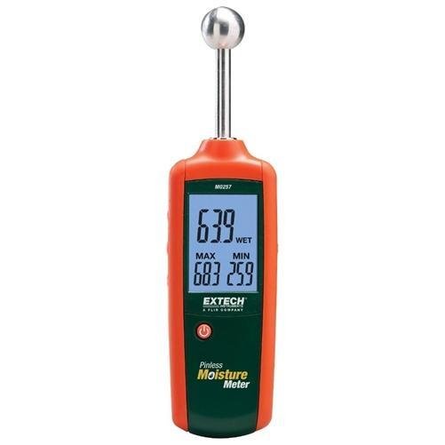 The MO257 Pinless Moisture Meter is for non-invasive measurements in wood and other building materials with virtually no surface damage. Measurement depth from 0.78 in. (20mm) to 1.6 in. (40mm) below the surface. Two user-settable alarm levels with audible beeper and visual flashing RISK or WET indicators. Triple backlit LCD. Complete with 3 AA batteries and pouch case.